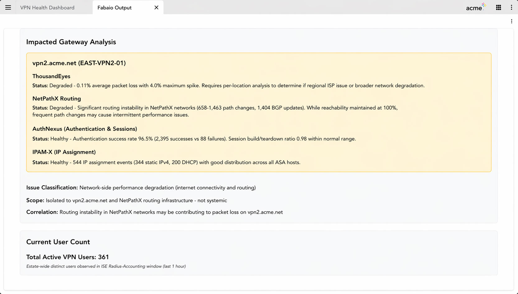 Instead of dashboards… you get answers from AI-driven VPN health monitoring