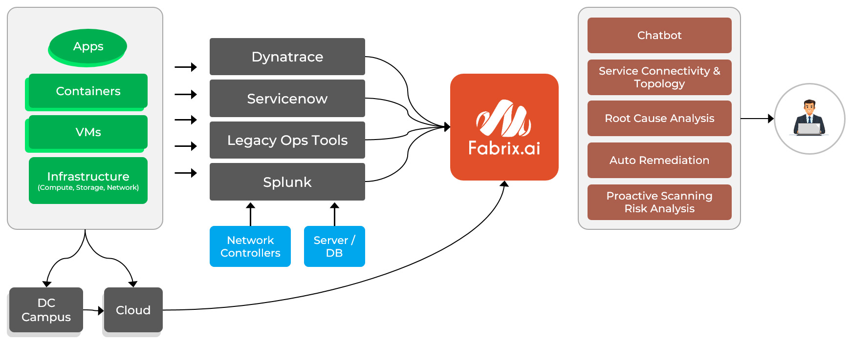 Fabrix takes a fundamentally different approach through Agentic Data Federation powered by ontology and orchestration. Instead of moving data, Fabrix keeps data where it resides and deploys federation agents across existing observability platforms. By building a cross-domain enterprise ontology and orchestrating workflows across vendors, Fabrix enables automated remediation without forcing enterprises to re-architect their environments. This creates true unified agentic operations, not bolt-on intelligence, but coordinated, cross-domain autonomy.
