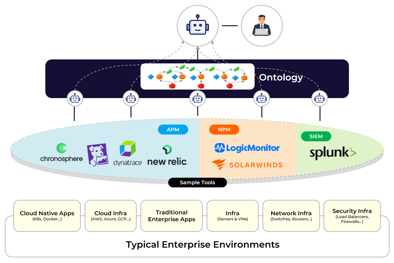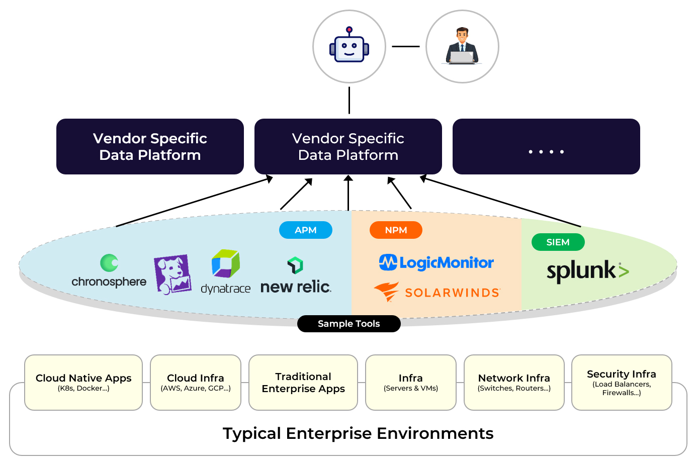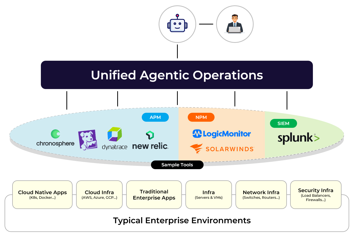 Enterprise IT and SRE operations today are deeply fragmented. Most organizations operate more than twenty monitoring and observability tools spanning cloud-native applications, traditional enterprise systems, infrastructure, networks, and security. Each platform focuses on a specific domain - APM, NPM, SIEM, cloud, or infrastructure, forcing operations teams to manually swivel between dashboards to correlate signals and determine root cause. This “swivel chair” problem slows incident response, increases operational complexity, and prevents true automation. As enterprises move toward autonomous operations, this siloed approach is no longer sufficient.